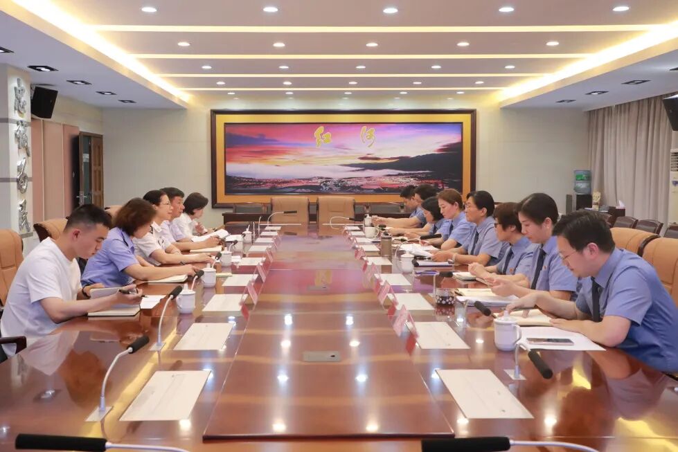 4月17日,省级专项普法第七工作组组长金文英、州普法专项办副主任、州委政法委副书记李建科一行5人到红河州人民检察院开展普法强基补短板专项行动督导检查工作。